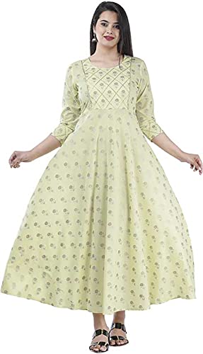Loyster Women’s Rayon Printed A-Line 3/4 Sleeve Regular Kurti (Yellow)