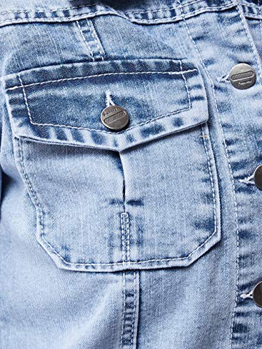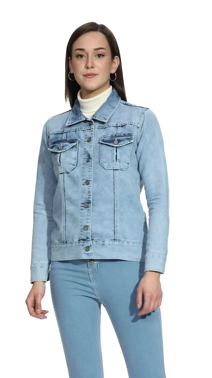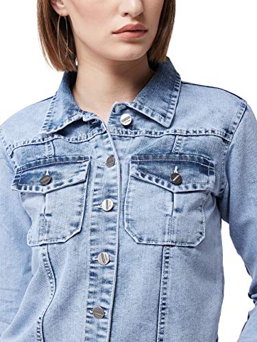 Miss Chase Women’s Light Blue Collared Full Sleeves Solid Buttoned Denim Jacket