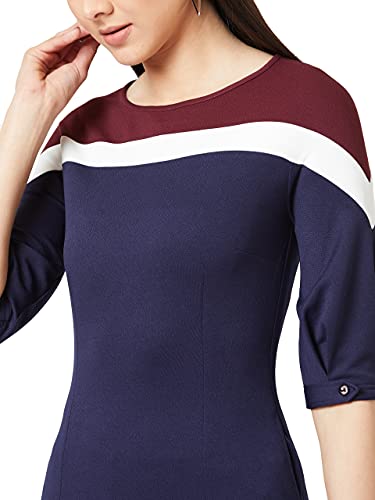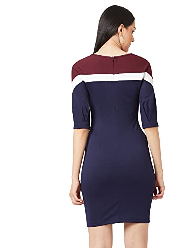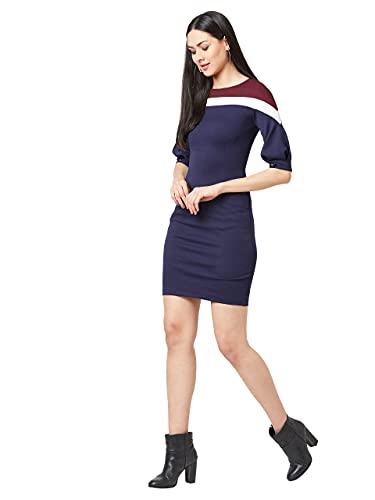 Miss Chase Women’s Multicolor-Base Navy Blue Round Neck 3/4th Sleeves Solid Bodycon Mini Dress