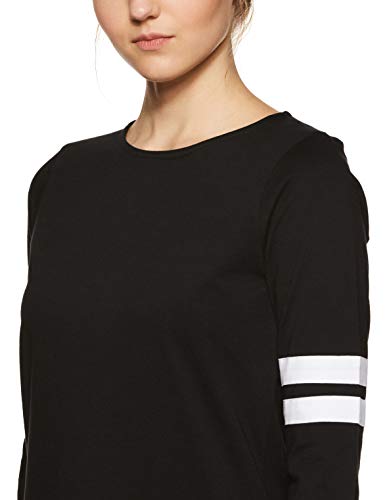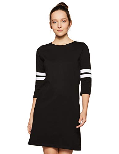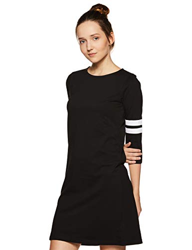Miss Chase Women’s Super Soft Solid Mini Round Neck 3/4 Sleeve Panelled Color Block Shift Dress | 2 Colors (MCSS17D09-11-62-02, Black, X-Small)