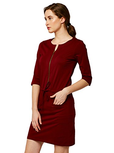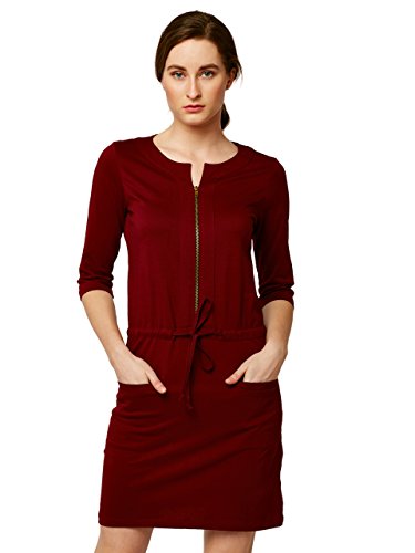 Miss Chase Women’s Super Soft Round Neck 3/4 Sleeves Solid Mini Shift Dress with Zip Closure | 2 Colors(MCSS18D11-25-143-02, Maroon, X-Small)