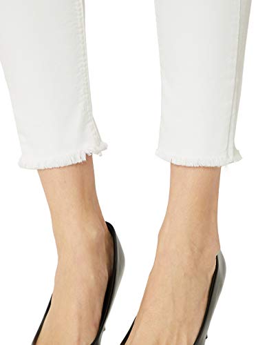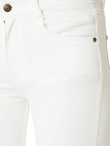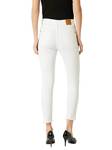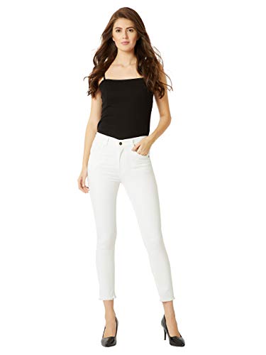 White skinny fit high rise bleached cropped length stretchable denim jeans, Has five pockets, belt loops and a button zip closure, Has a clean look