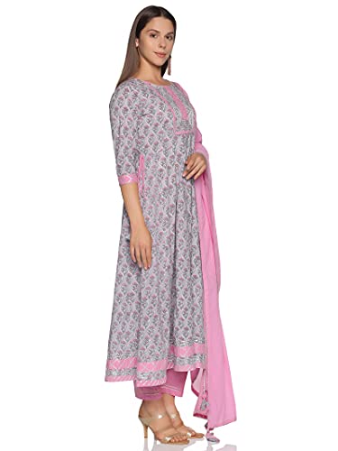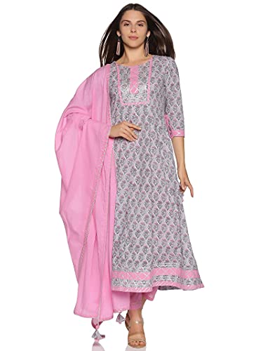 An amazing range of women’s ethnic wear in soft and solid colors that looks perfect for regular wear. With beautiful designs and patterns. These apparels are very stylish and comfortable too. Get rid of the ‘regular’ look this season wearing Kurta Pant Dupatta Set by RAJMANDIR FABRICS. This Anarkali Floral Print Gota Work Kurta Set from RAJMANDIRFABRICS exhibits Gota lace on yoke, sleeves, gota work on pant border as well Duptta With Latkan along with Round Neck & 3/4th Sleeves. Tailored from Cotton. Product Top Length: 46 Inches & Bottom Length : 39.