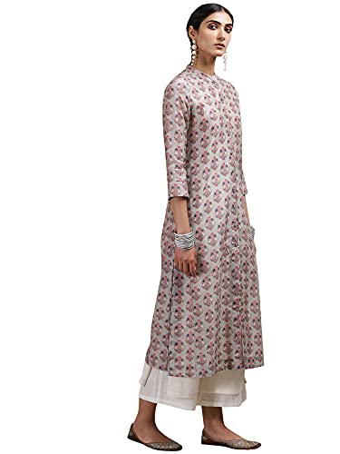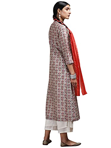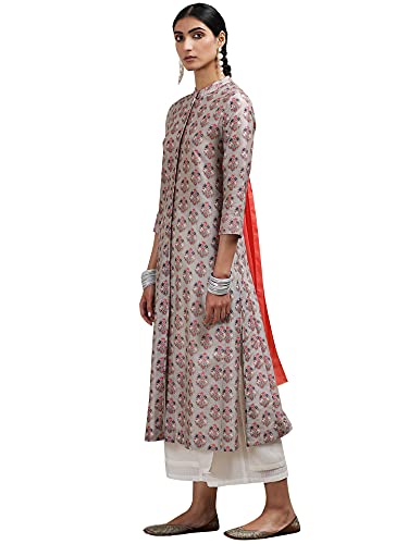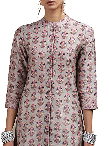 Grey Floral Print Chanderi Kurta