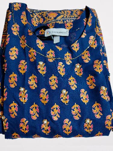 Make a statement with this elegant from Satrangee. Look nice for the day or for your next dinner party or family gathering. Each piece is elegantly crafted and will surely add to your wardrobe. Team it with modern accessories and stunning heels or flats to create a contrasting effect. An amazing range of women Kurtis in soft and solid colors that looks perfect for regular wear. With embroidery design and printed pattern, these apparels are very stylish and comfortable too. Disclaimer: The product might have slight shade, print and embroidery variation as all our products are hand dyed, printed and hand work.