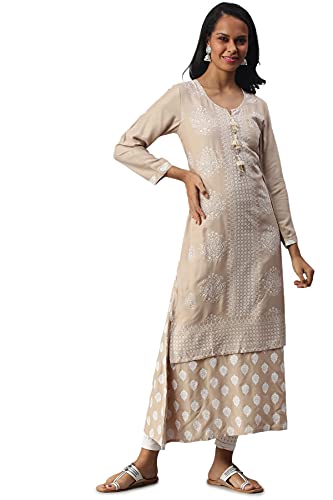 Soch Beige Viscose Rayon Embroidered Kurta