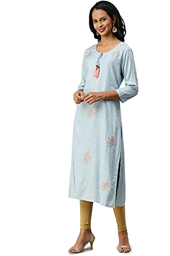 Soch Blue Viscose Rayon Embroidered Kurti