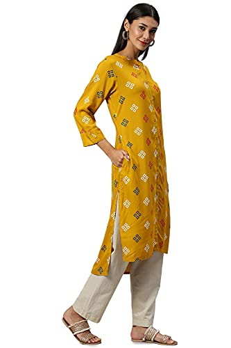 Soch Mustard Viscose Rayon Printed Kurti