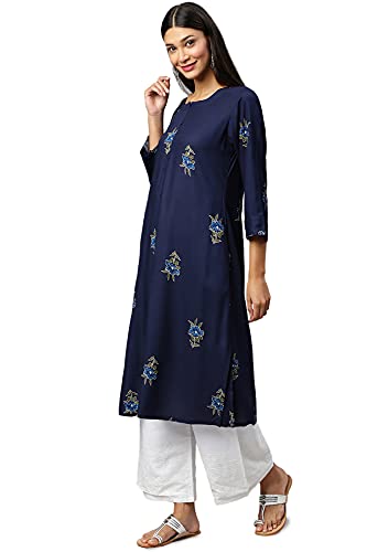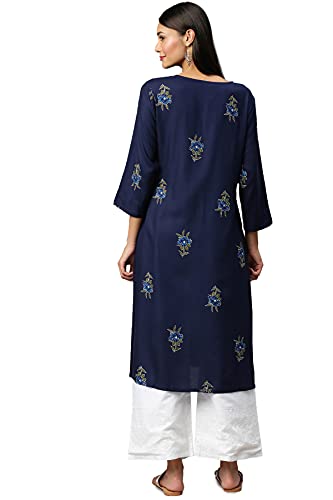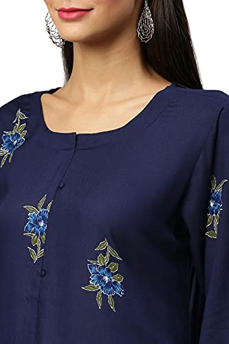 Soch Navy Blue Viscose Rayon Printed Kurti