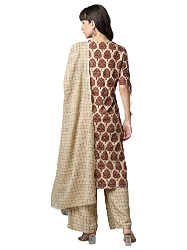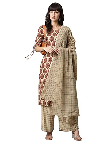 Product tpe- Brown Printed Kurta set with Dupatta