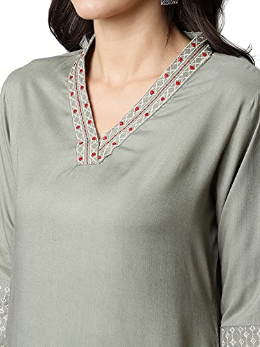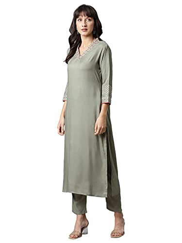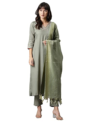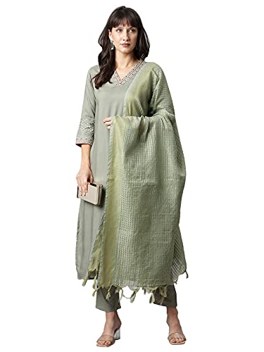 This is Sringam Design – your go-to for all the latest trends, no matter who you are, where you’re from and what you’re up to. Whether you’re after a wardrobe refresh or just a few staples, Sringam serves big outfit energy. Pair this kurta with platform heels or flats and a trendy clutch. V-Neck Green Embroidered Solid Kurta set with dupatta is handmade and stitched using high grade Viscose Rayon grade fabrics and yarns under the strict surveillance of our well-versed executives. Created by us, styled by you.