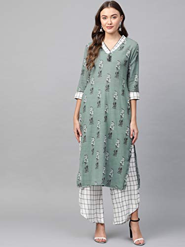 Refresh your wardrobe with this kurta palazzo set from Sringam. This straight set completes your look for your special occasions, like – Functions, Festivals, Parties and Weddings. Designed as per the latest trend to keep you in sync with high fashion during wedding and other occasion. It will keep you comfortable all day long.Our products are made and stitched using high grade fabrics and yarns under the strict surveillance of our well-versed executives.