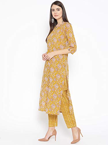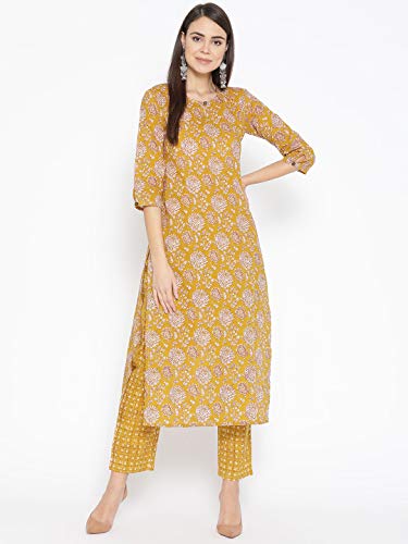 Product Type: Women Mustard Printed Kurta with Palazzos