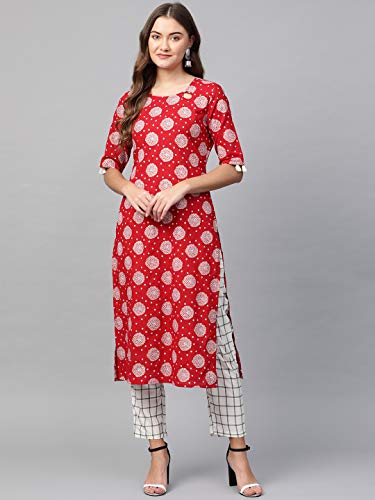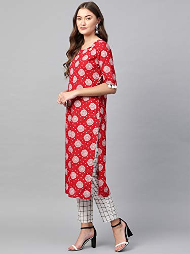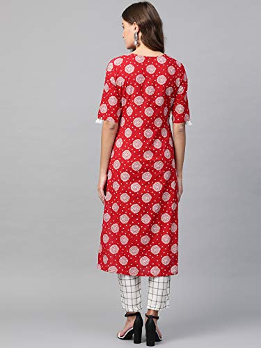 Product Type: Women Red Printed Kurta with White Printed Palazzo