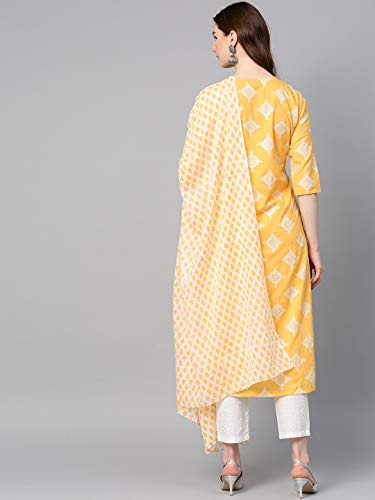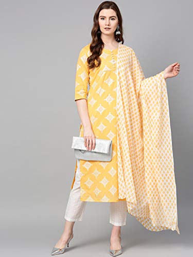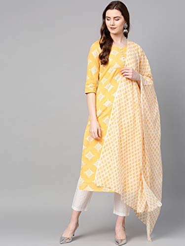 Product Type: Women Yellow Printed Kurta with Trouser and Dupatta