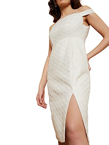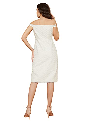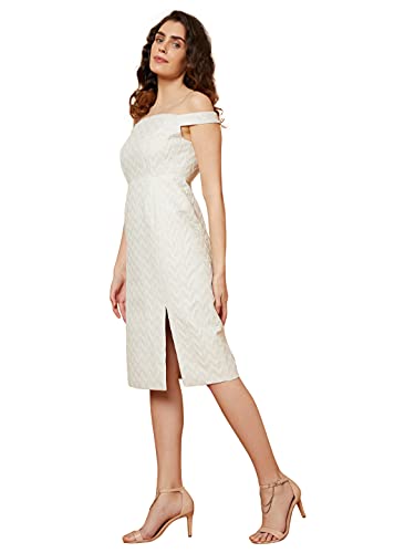 Vero Moda Women 81%Polyester,13% Cotton,6% Matt Self-Design Half Sleeve Off Shoulder Slim Fit Dress