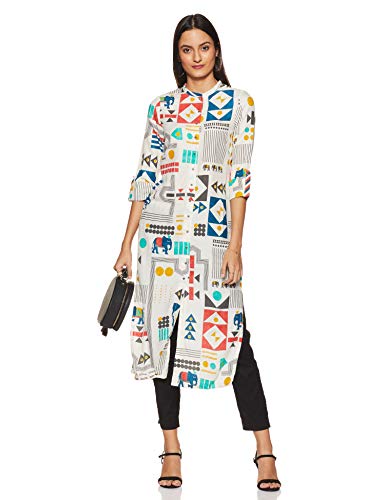 Mandarin NeckKurta-Print46″ L3/4 Slv