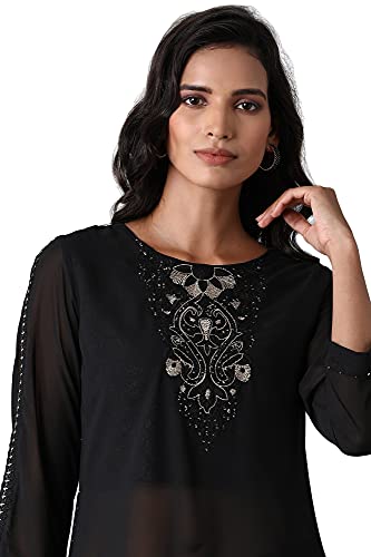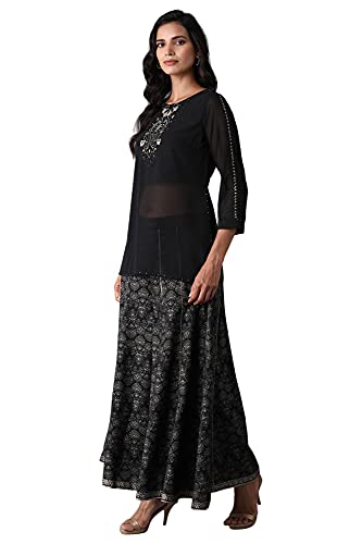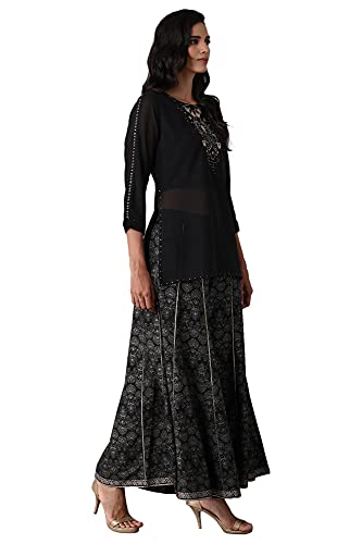 BLACK GEORGETTE LAYERED KURTI AND PRINTED DIVIDED SKIRT SET